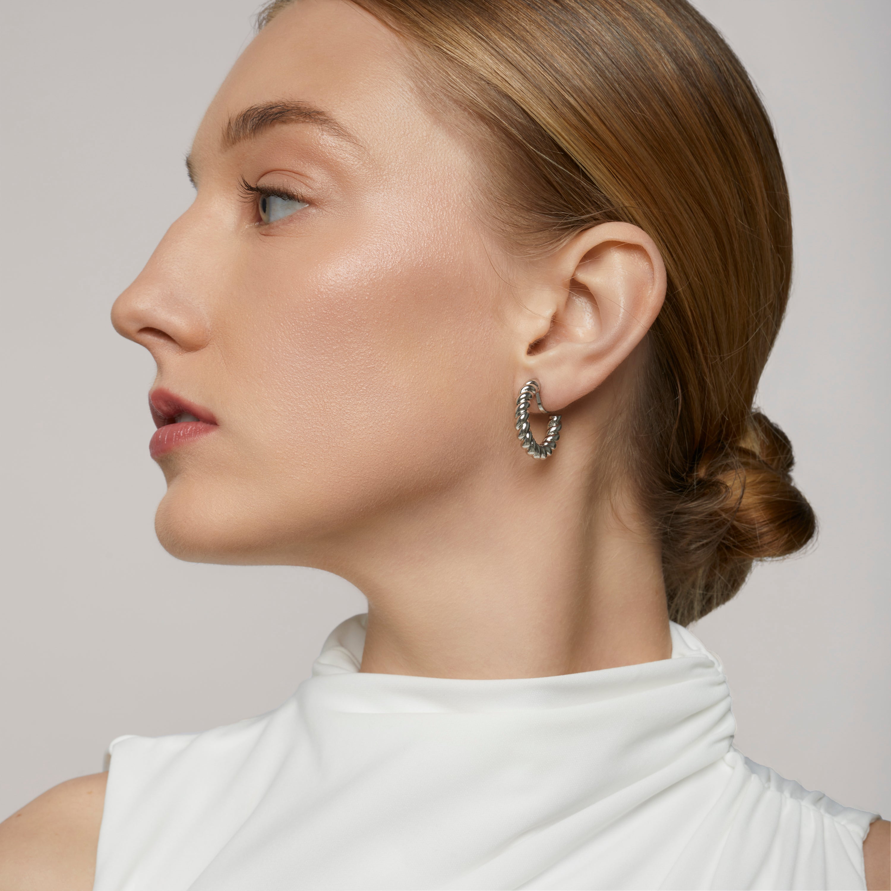 The Medium Croissant Hoop Clip On Earrings in Silver boast Mosquito Coil Clip-On Earrings for an easy, comfortable, and secure hold. Appropriate for those with Thick/Large Ears, Sensitive Ears, Small/Thin Ears, Stretched/Healing Ears, and Keloid Prone Ears, these earrings can be worn for up to 24 hours with a medium hold. They also have the ability to be adjusted by gently squeezing the padding forward once they are on the ear. Please note that this item is sold as a pair.