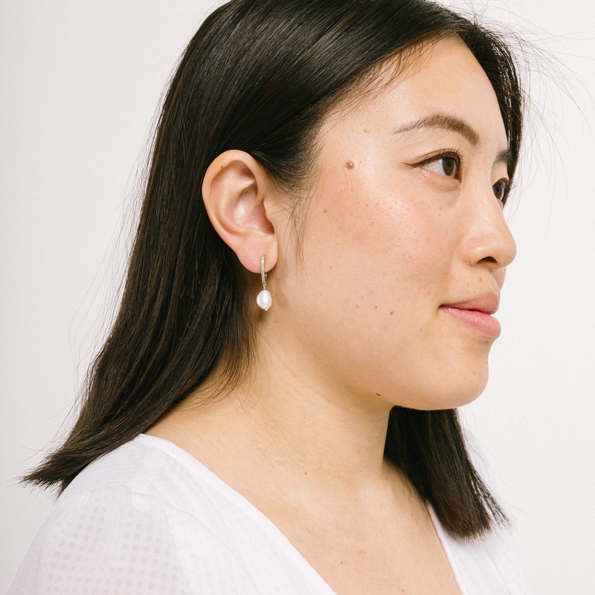 Add a touch of sophistication to any outfit with our Pearl Pavé Huggie Clip On Earrings in Gold. These timeless earrings feature a unique Mosquito coil closure that provides a secure hold. Discover how to properly wear the mosquito coil style clip-on earrings with our helpful video guide. Shop our selection of beautiful and elegant Pearl Pavé Huggie Clip On Earrings in Gold for any occasion.