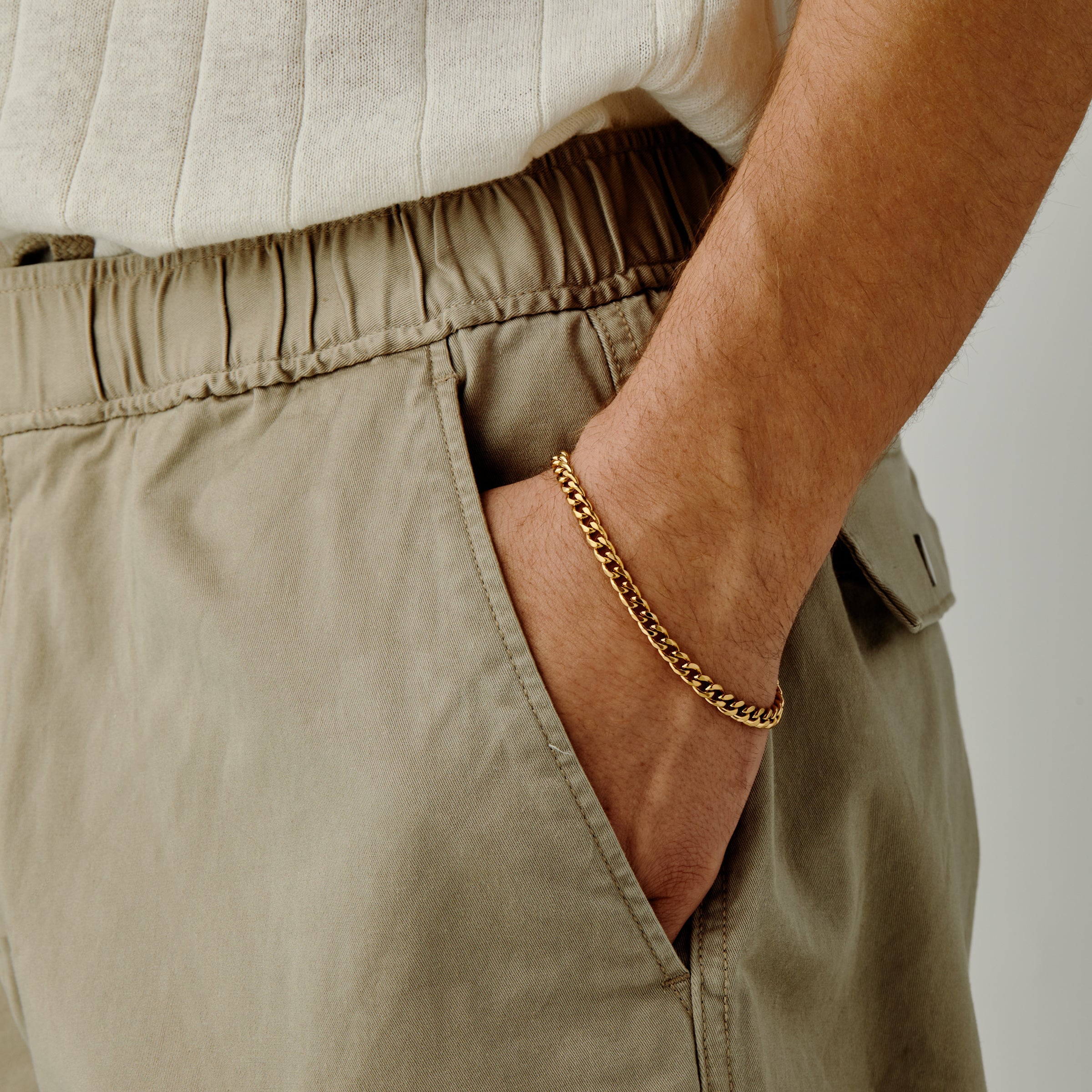 Stunning 5mm Cuban Chain Bracelet in Gold crafted from non-tarnish, water-resistant Stainless Steel will add an extra touch of class to your wardrobe!