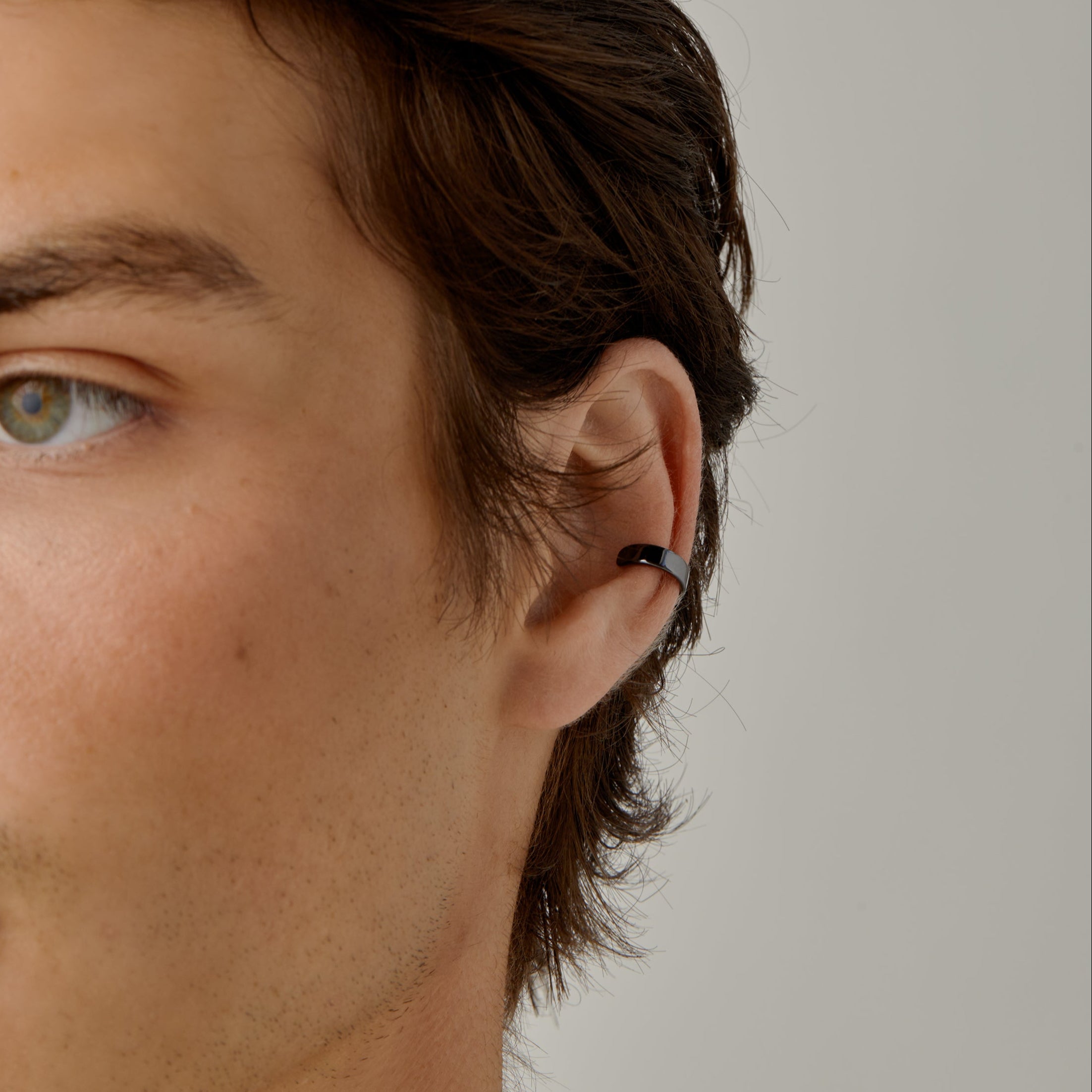 Add bold minimalism to your look with the Smooth Band Ear Cuff in Black — a sleek, non-tarnish, and water-resistant cuff designed for comfort and versatility. Perfect for thick, small, or sensitive ears, this adjustable piece gently squeezes to fit and stays comfortable for up to 24 hours. No piercing needed, just effortless style — crafted to be worn on the helix for a modern, polished finish.
