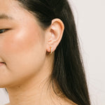 These Mini Pavé Huggie Clip-On Earrings in Gold feature a regal look. Non-tarnish and water-resistant, these modern clip-ons have a discreet mosquito coil closure and backing with paddings for comfort. Their thin shape is adorned with glimmering zirconias, for a contemporary finish.