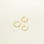 Elevate any ensemble with this Trio Ear Cuffs Set in Gold. The three pieces of this exclusive set promise to make a stylish statement that won't go unnoticed. Also available in silver.