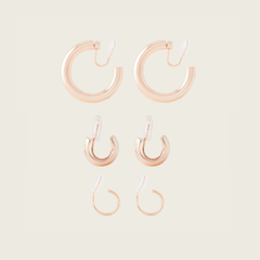 Our Allie Hoop Clip On Earrings have a rotating mosquito coil clip on closure that allows them to move with you. Your perfect non pierced statement piece.