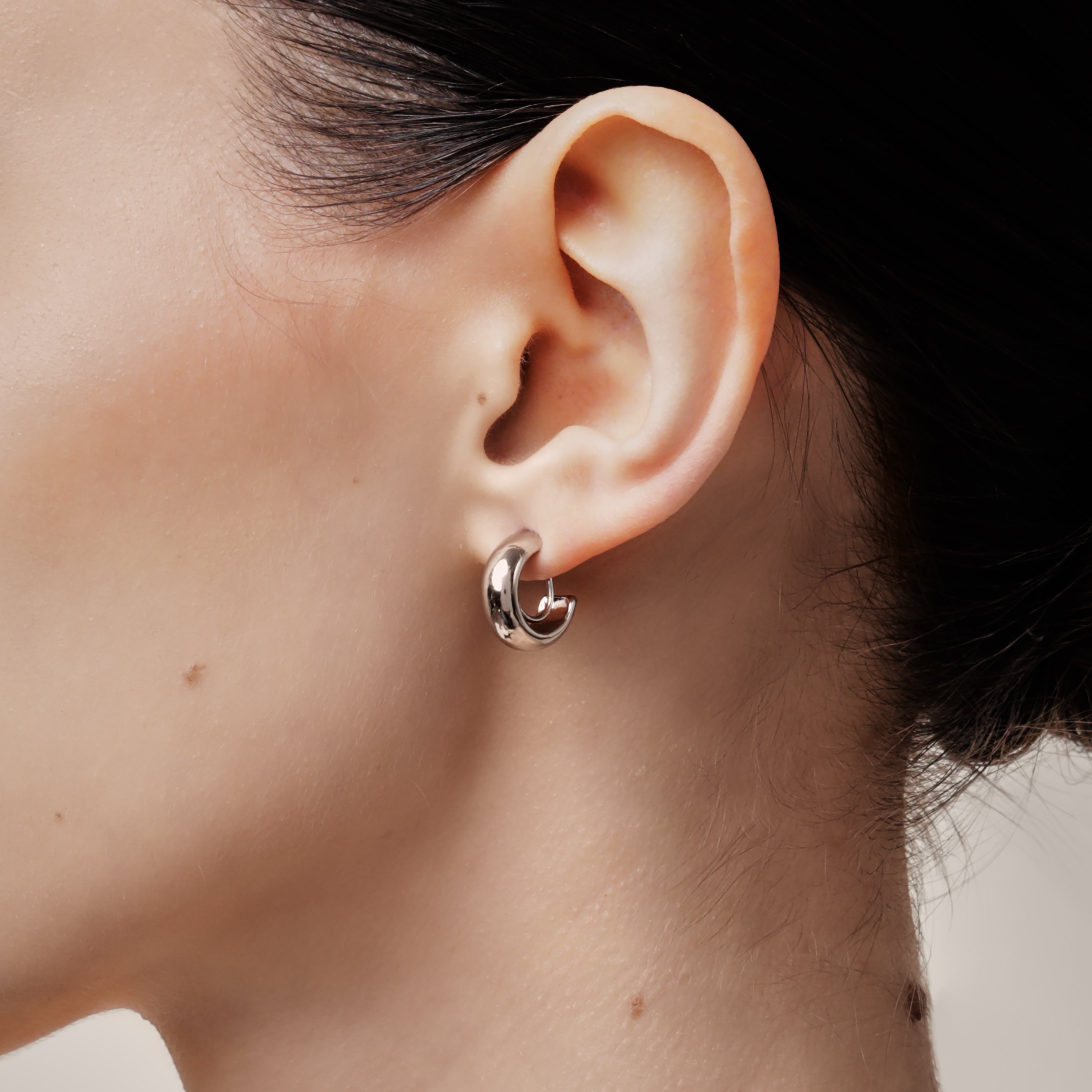 These Simple Huggie Clip-on Earrings in Silver feature a secure mosquito coil clip-on and are suitable for all ear types, providing a comfortable fit even after 24 hours of wear. Ensures a snug and secure fit that can be adjusted to suit your ear. A golden version is also available.