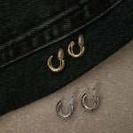 Small Hoop Clip-On Earrings in Gold: Sleek Mosquito Coil Closure for an all-day, secure fit. Suitable for multiple ear types with gentle adjustability. These sparkles will capture hearts and turn heads. Also available in a sleek silver option.
