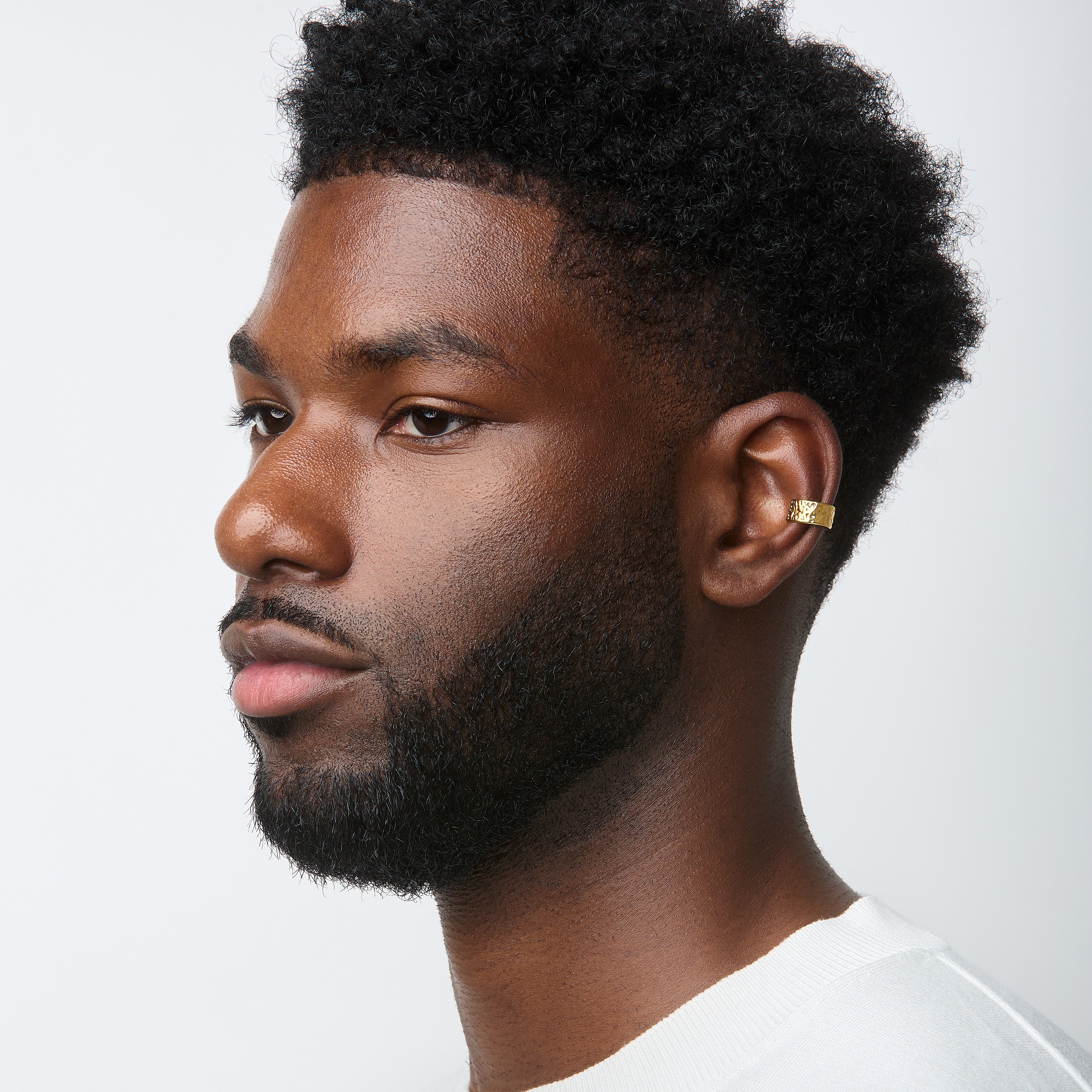 The edgy sibling to the Cigar Band Ear Cuff, the hammered texture delivers a a refined, masculine edge.