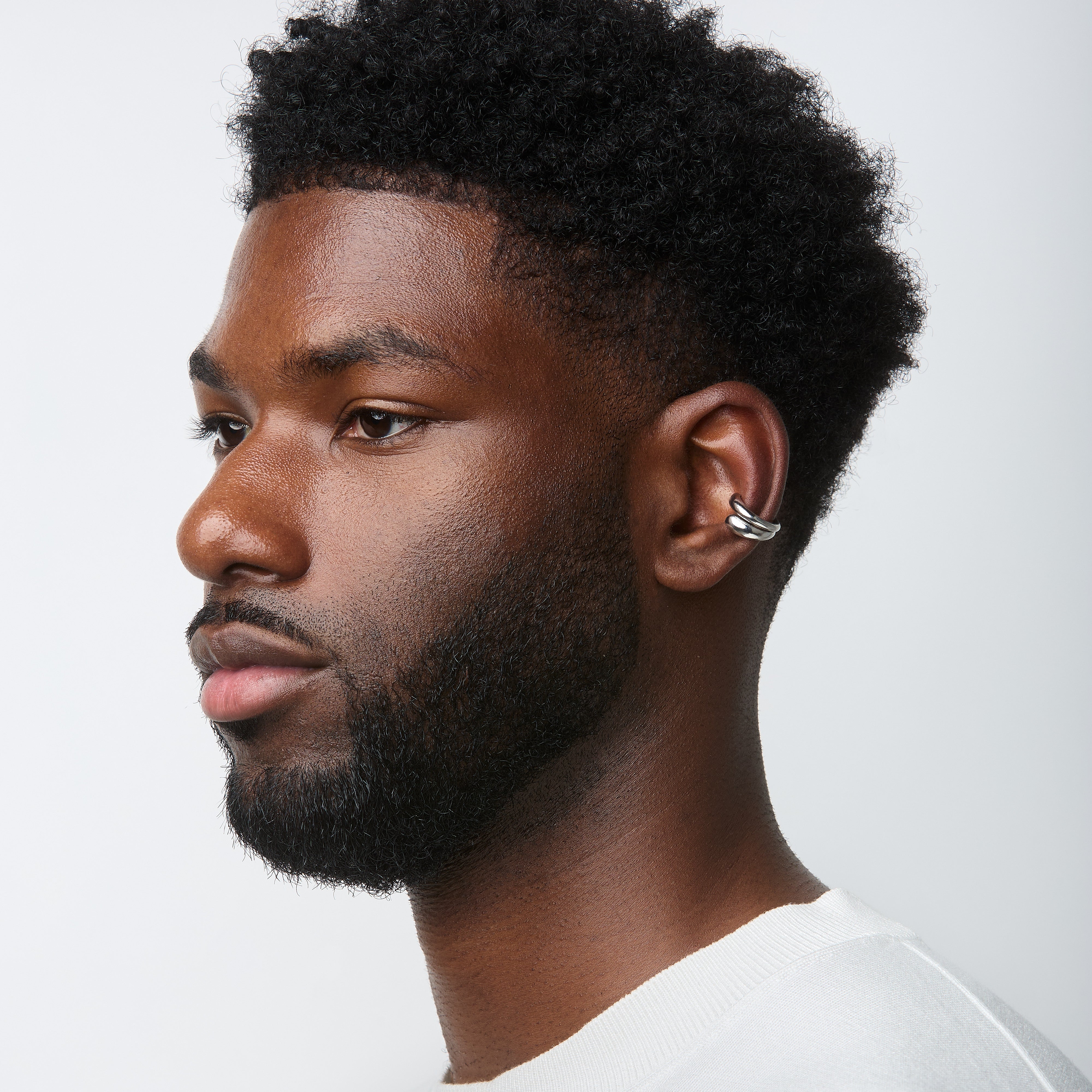 Discover the understated elegance of our Nested Ear Cuff in Silver. This versatile piece features a modern layered design that catches the light beautifully, adding dimension to your everyday look.