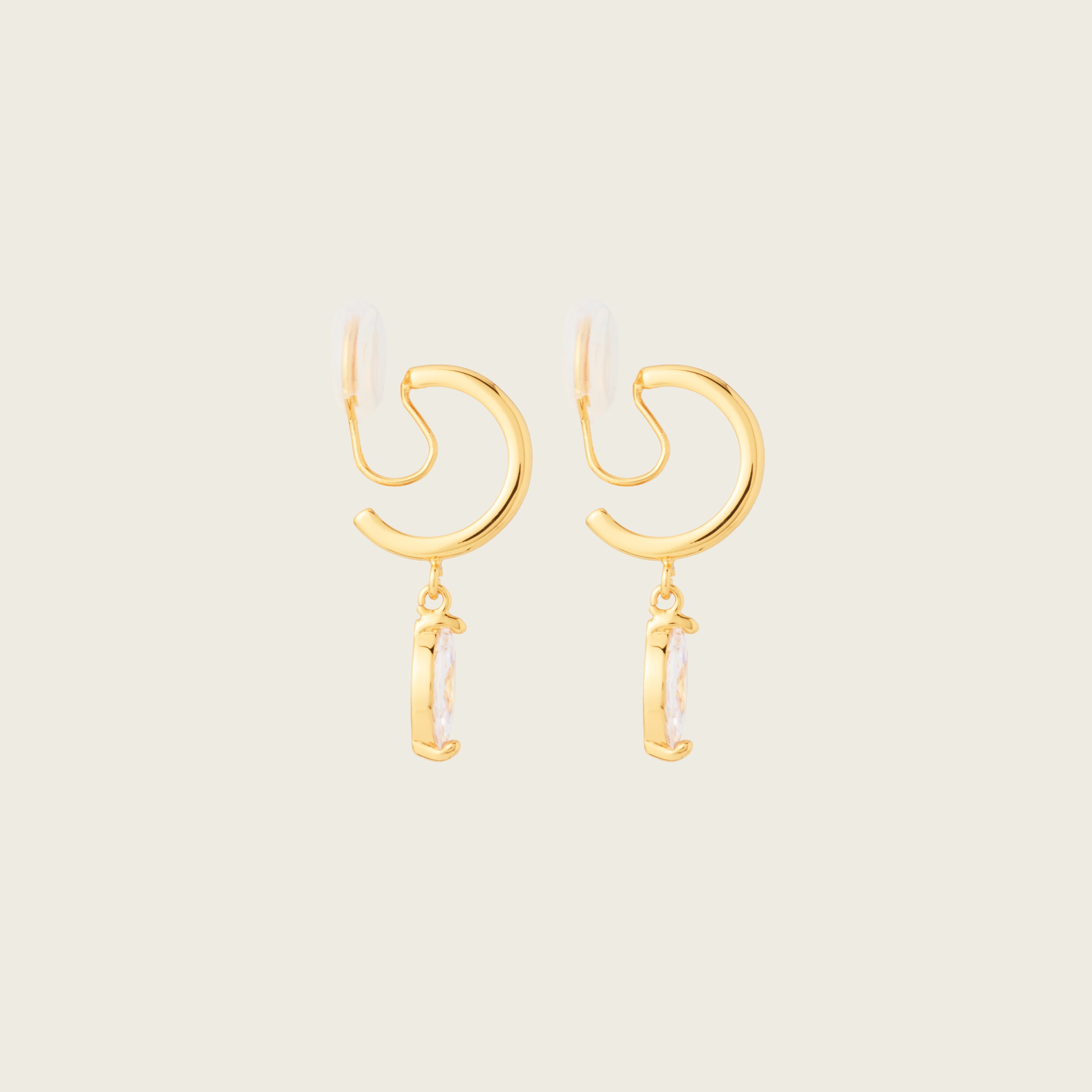 These Mini Marquise Hoop Clip On Earrings in Gold bring eye-catching elegance with zero piercings required. They feature a mosquito coil closure which offers a medium secure hold and can be comfortably worn for up to 24 hours.