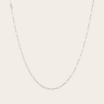 Introducing the Essential Paperclip Chain Necklace in Silver! This exquisite necklace boasts a stylish paperclip chain design. It's perfect on its own or paired with the matching Essential Paperclip Chain Bracelet. Plus, with no adjustable elements, it offers a sleek and effortless look. Elevate your accessory game with this must-have piece!