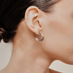 The Trinity Hoop Clip On Earrings in Silver feature a Mosquito Coil Clip-On Closure, making them ideal for Thick/Large Ears, Sensitive Ears, Small/Thin Ears, Stretched/Healing Ears, and Keloid Prone Ears. These earrings provide a medium secure hold for up to 24 hours of comfortable wear, and can be easily adjusted by gently squeezing the padding forward once they are on the ear. Please note that this item includes only one pair.