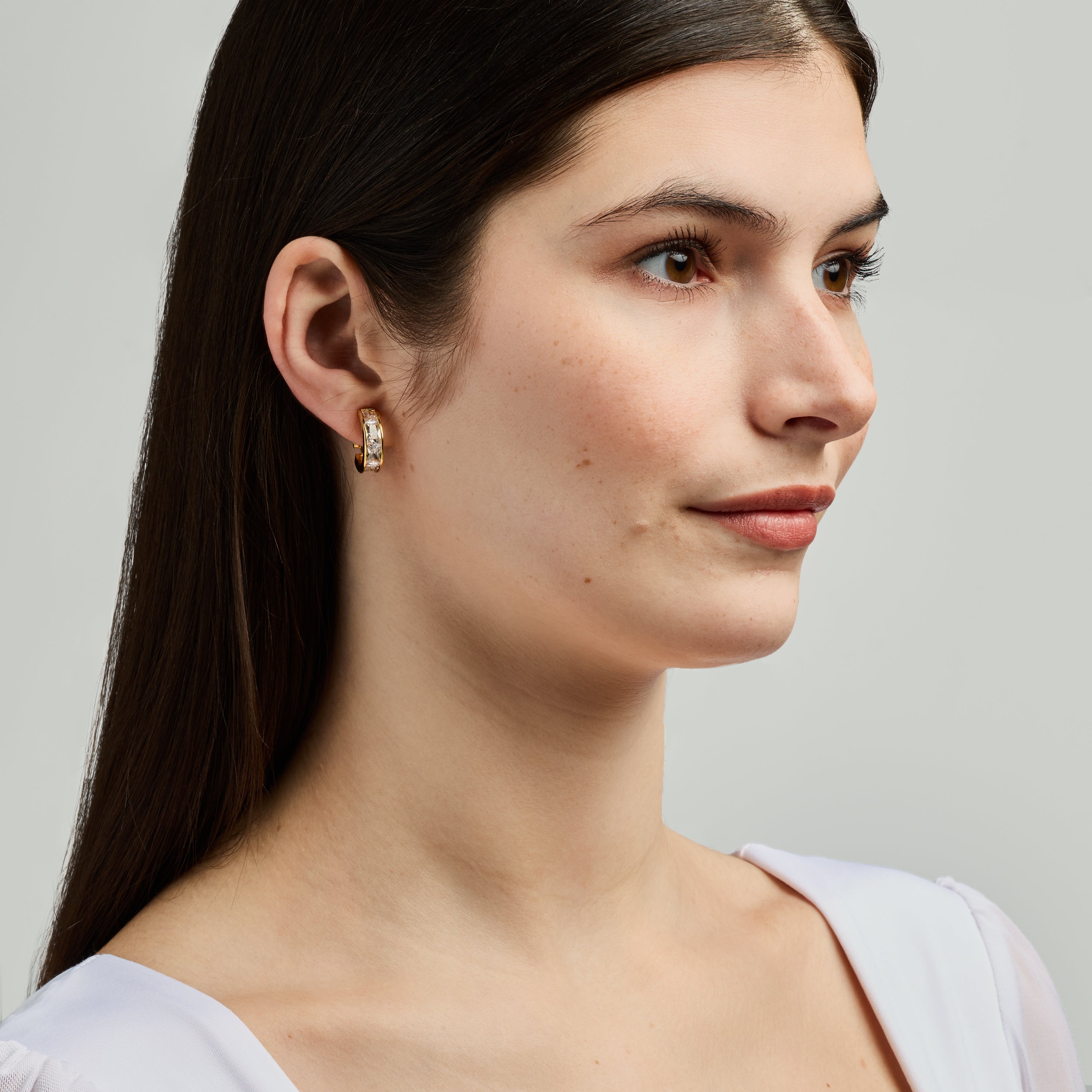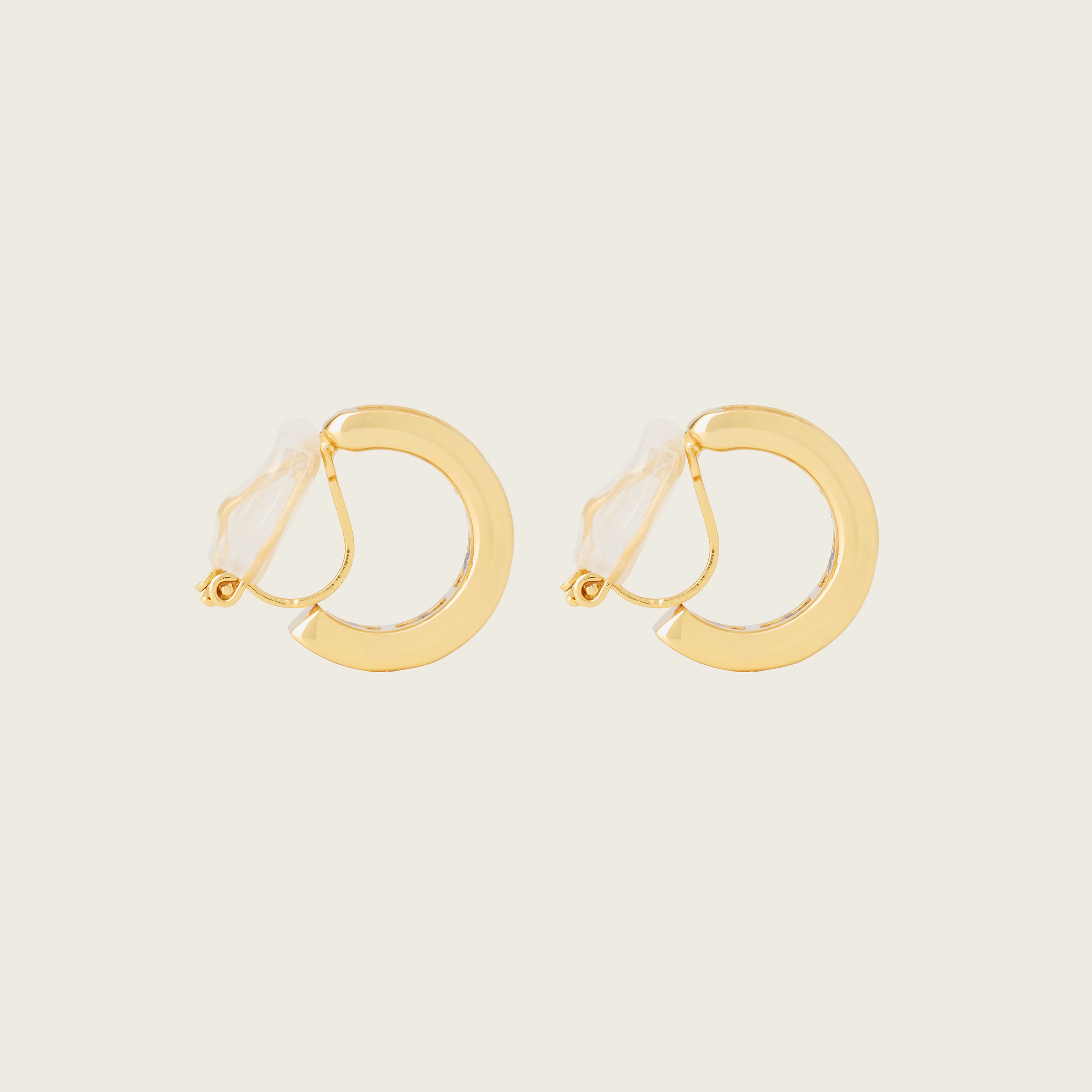 Hannah Hoop Clip On Earrings in Gold feature a timeless hoop silhouette lined with sparkle that compliments any occasion, from casual outings to formal events.