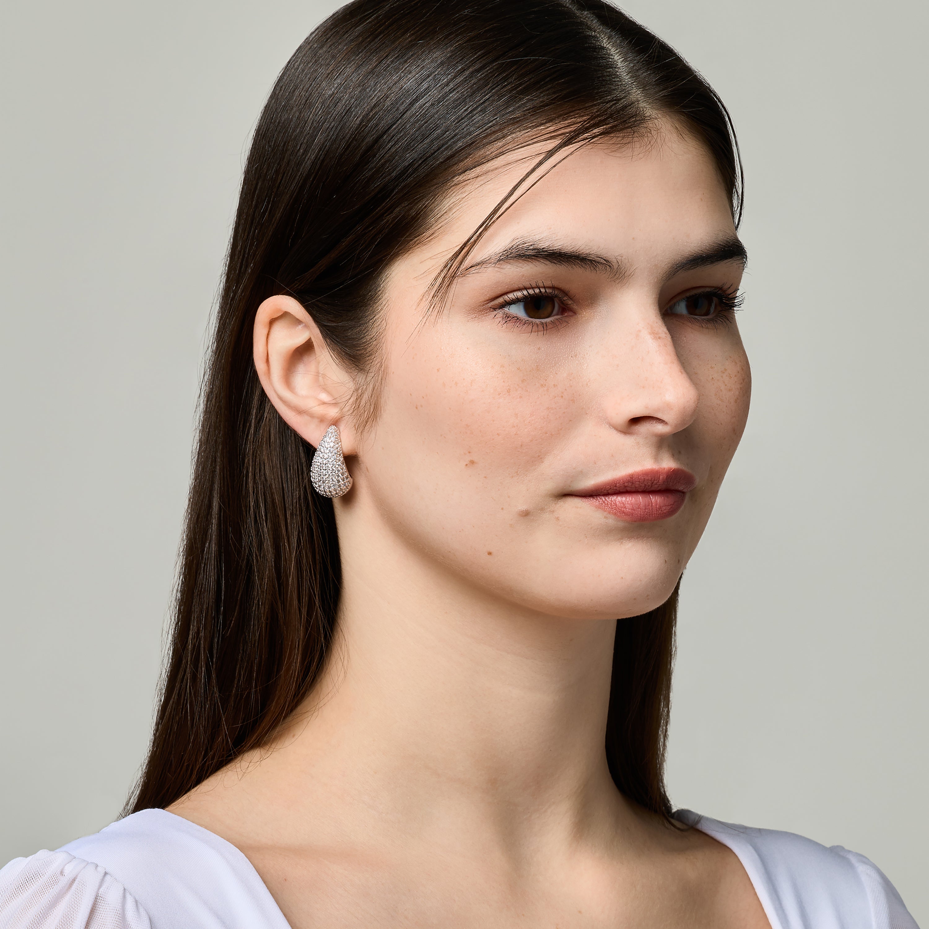Embrace a look that feels both polished and effortlessly chic with our bold Lila Pavé Clip On Earrings in Silver.