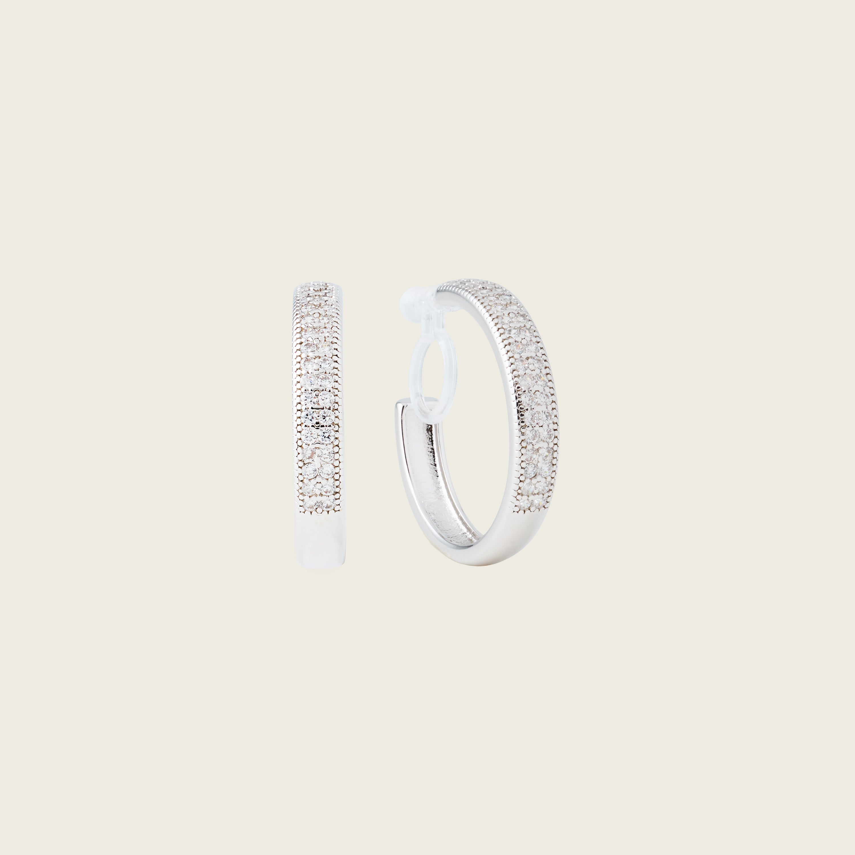Our Lydia Pavé Hoop Clip On Earrings in Silver are a refined essential with their double row of sparkling cubic zirconias.