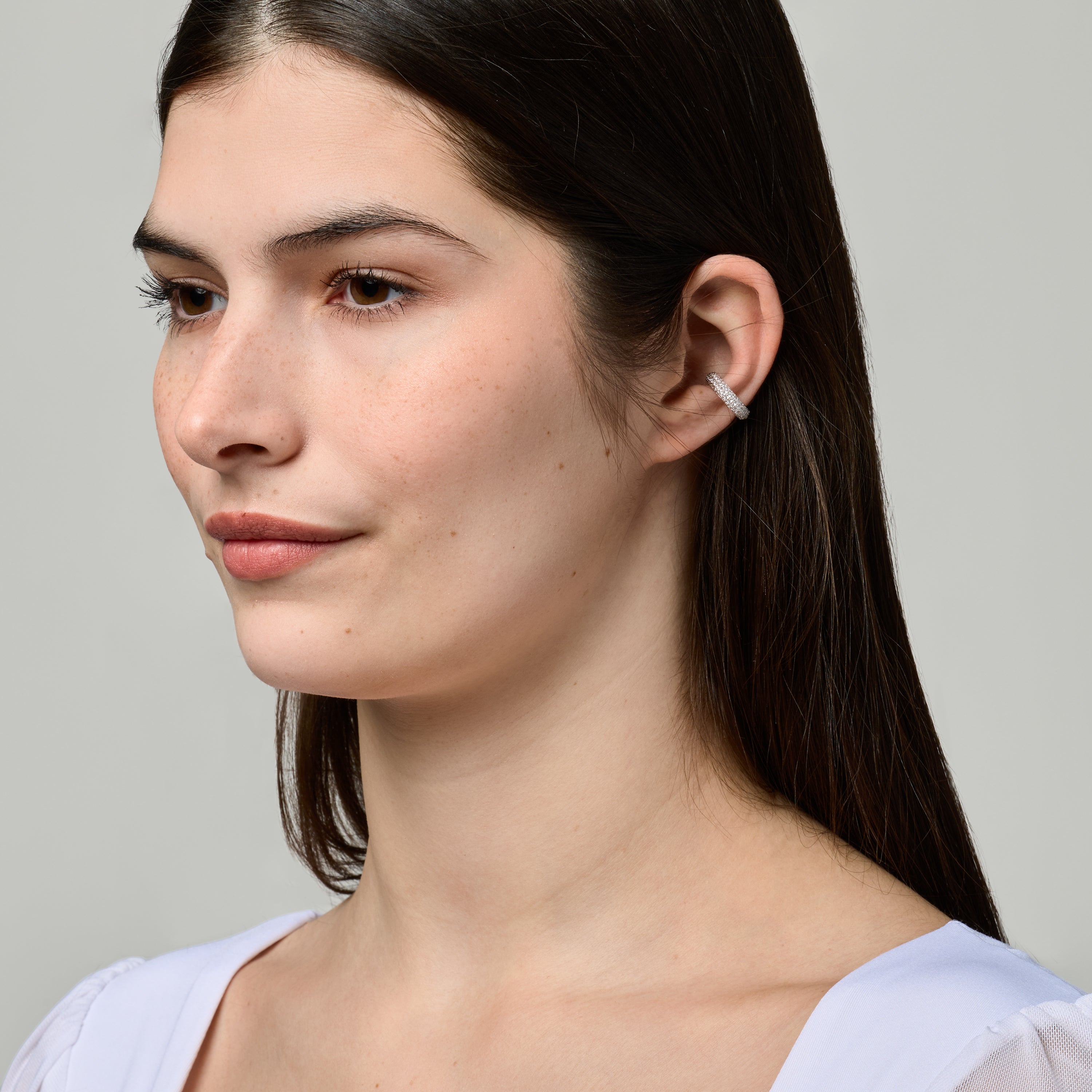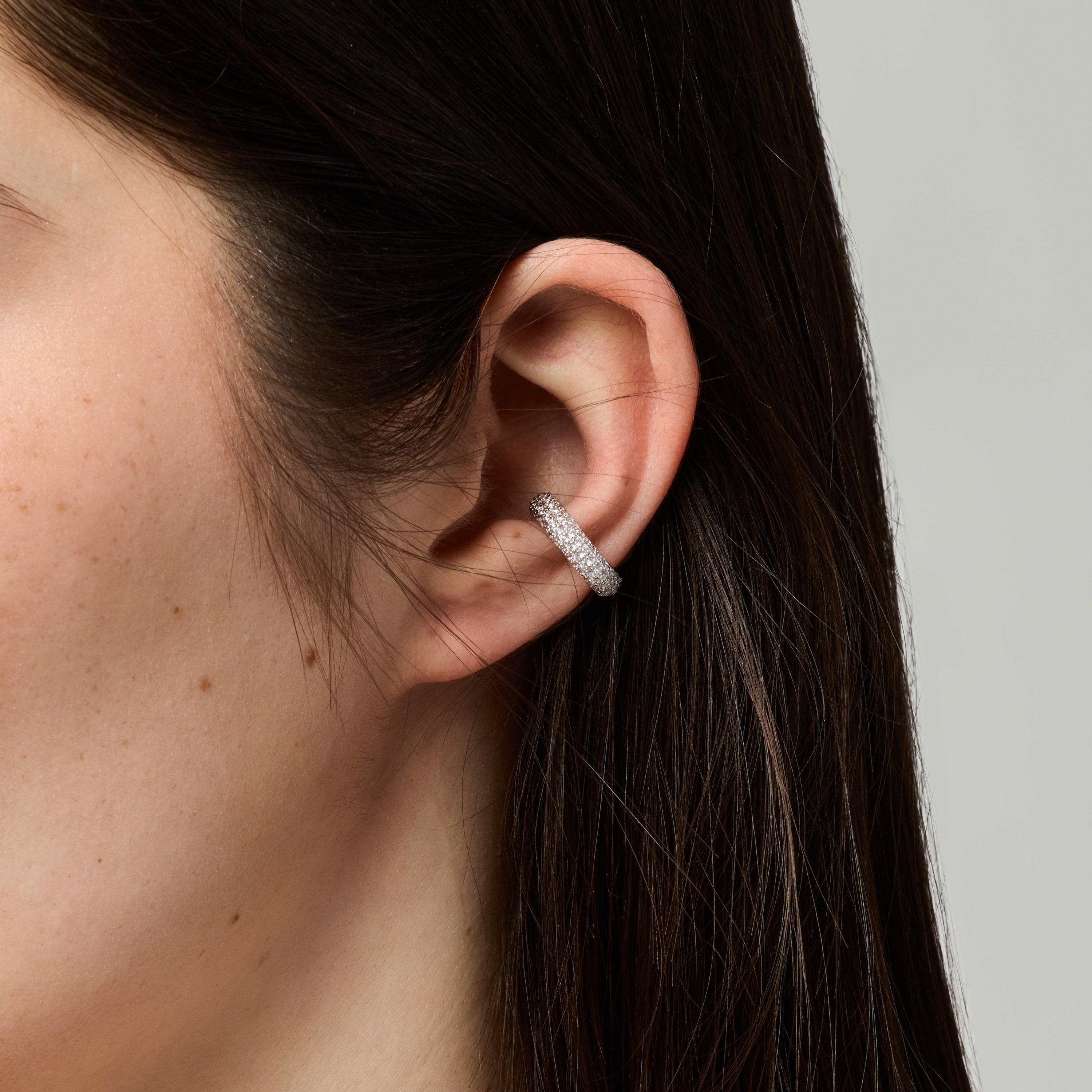 Our Tashi Pavé Ear Cuff in Silver adds polish to your everyday style. The intricate pavé detailing of this ear cuff is designed to catch the light beautifully, adding sparkle and sophistication to any look.