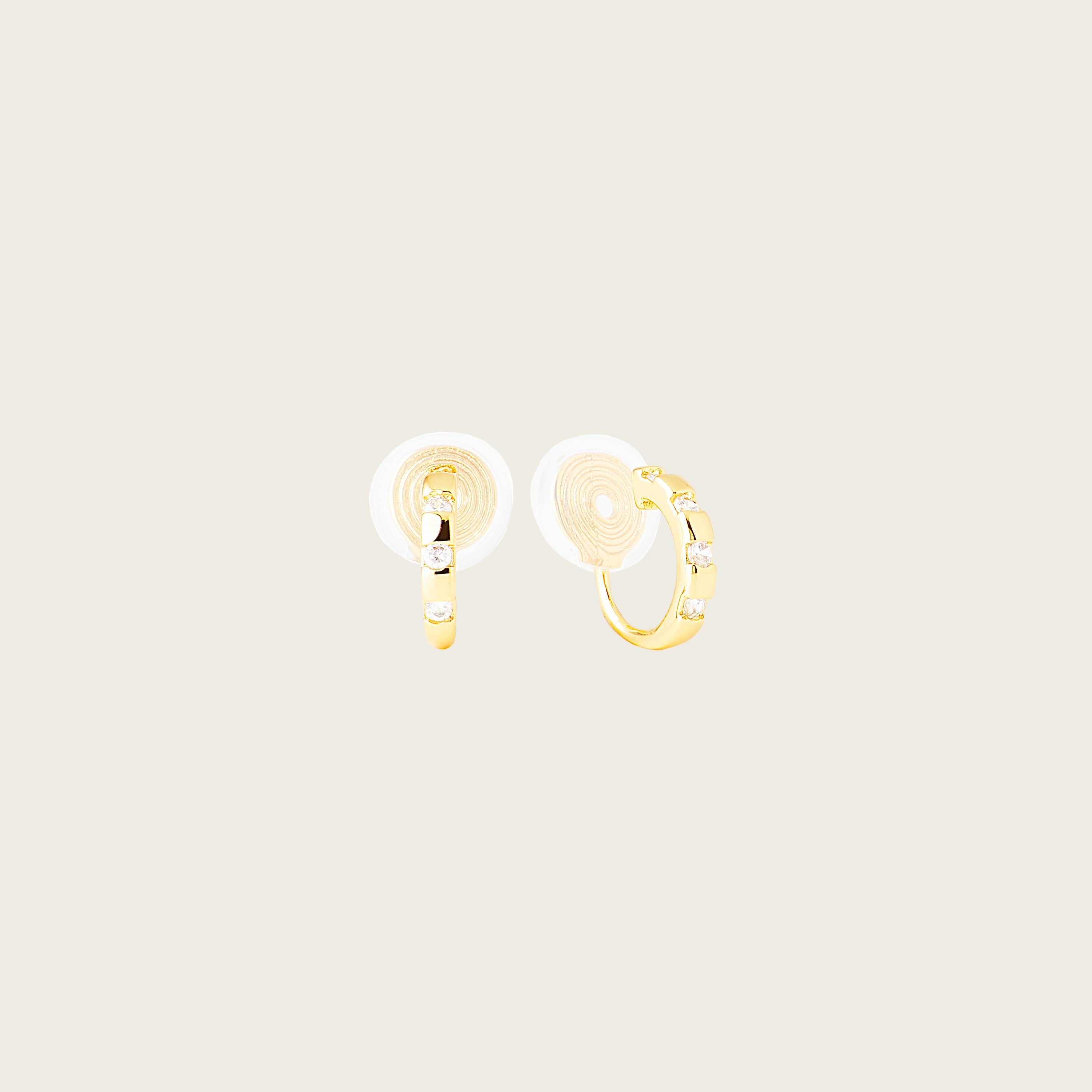 The Sydney Pave Clip On Earrings in Gold boast a Mosquito Coil Closure Type, making them the perfect choice for those with Thick/Large Ears, Sensitive Ears, Small/Thin Ears, Stretched/Healing Ears, or Keloid Prone Ears. These clip-ons offer a medium secure hold and can be gently adjusted by squeezing the padding forward once on the ear. Please note, this item includes only one pair.