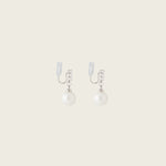 18K white gold plated over brass, simulated faux pearl, cubic zirconia