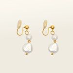 Duo Pearl Clip On Earrings in Gold