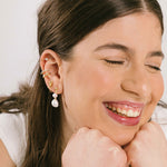 The Duo Pearl Clip-On Earrings in Gold provide a mosquito coil clip-on closure, ideal for all ear types, with a medium secure hold that allows for comfortable wear for up to 24 hours. Adjust the fit to your ear by gently squeezing the padding forward once on. Each piece is unique, with natural variations in size and colour.