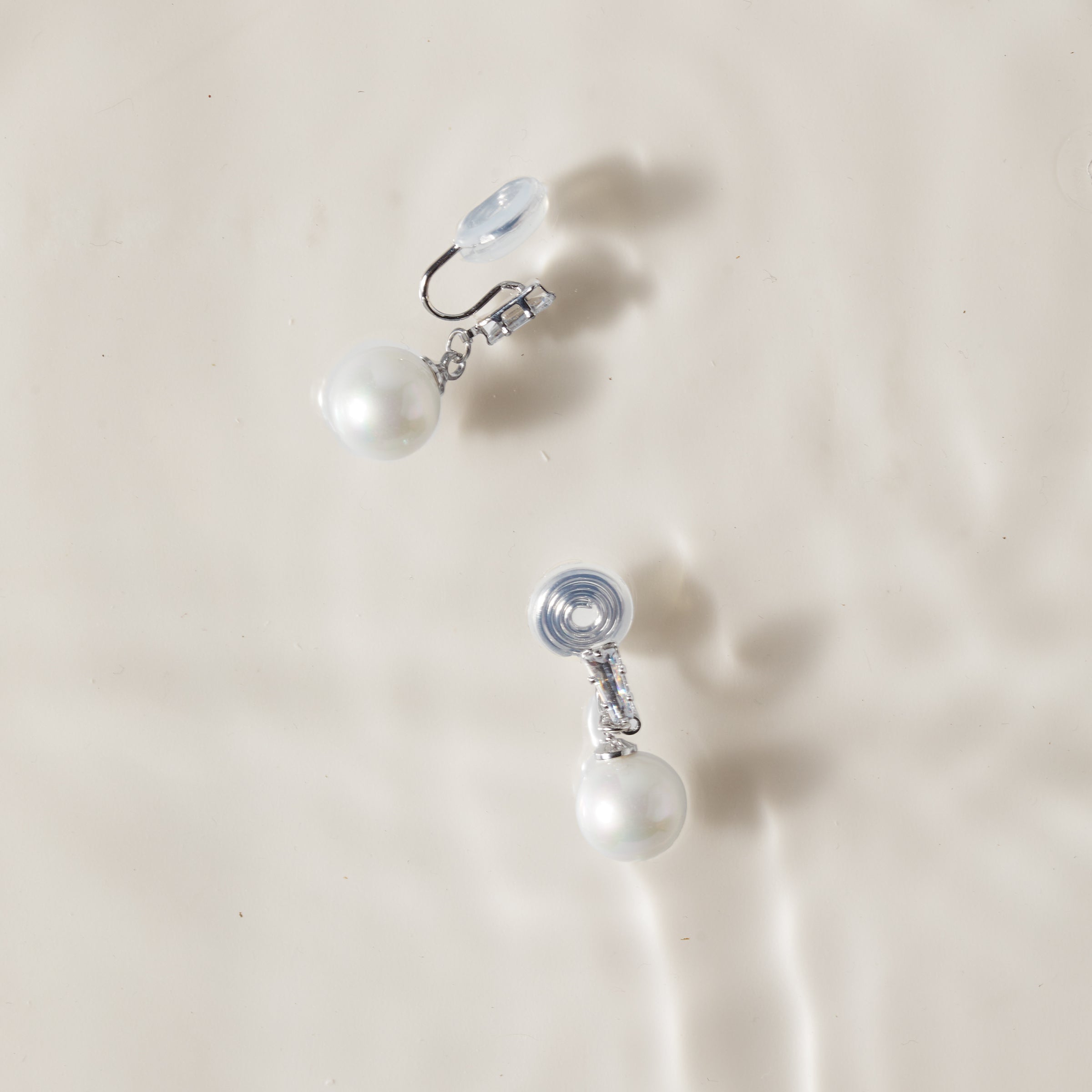 Duo Pearl Clip On Earrings in Silver