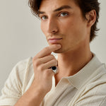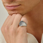 The Black Oval Signet Ring in Silver features a stainless steel base with a luxurious 18K silver plating and a distinctive black oil drip finish. With an 18mm width and weighing 11.5 grams, this ring combines bold design with lasting comfort. It is crafted to resist tarnish and water, ensuring it remains striking through daily wear.