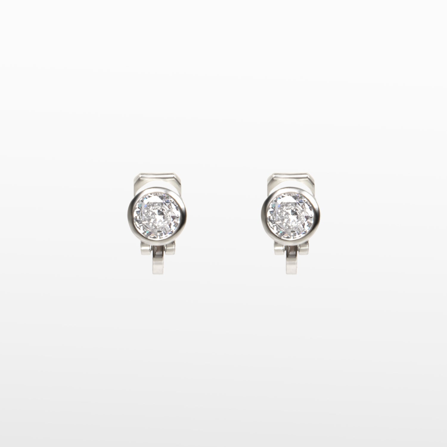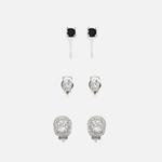 This set consists of a pair of each of the following: Bezel Stud Clip On Earrings in Silver, Cushion Stud Clip On Earrings in Silver and 4mm Round Stud Clip On Earrings in Silver