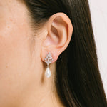 18K white gold plated over brass, freshwater pearl, cubic zirconia