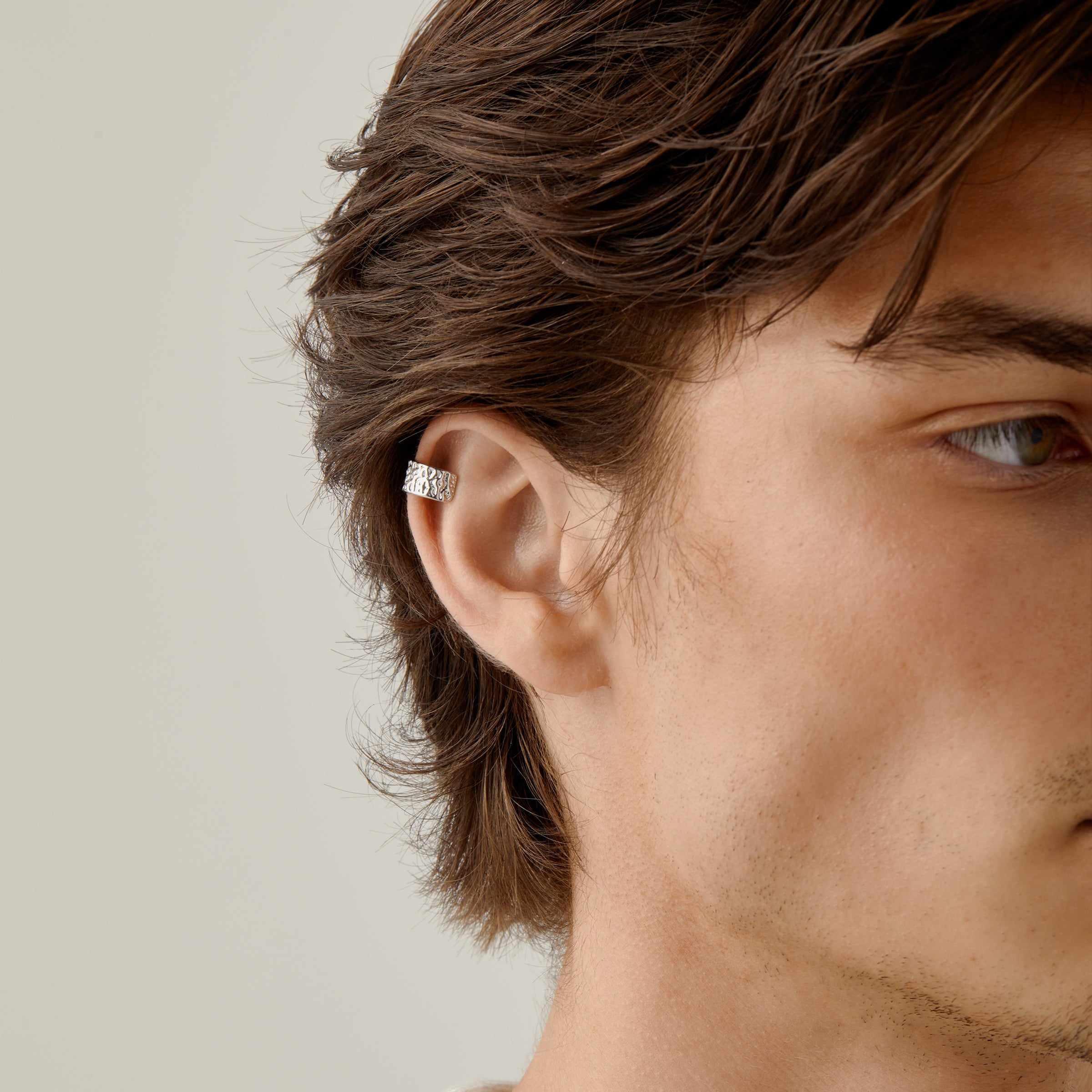 Elevate your style effortlessly with the Hammered Ear Cuff in Silver. Designed to comfortably fit thick, large, sensitive, or small ears, this adjustable cuff gently conforms to your ear for a secure yet pain-free wear up to 24 hours. Its unique hammered texture adds a bold, contemporary edge, making it a versatile accessory for any look. Slip it on and enjoy a statement piece that combines comfort and striking design.