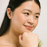 This Daisy Ear Cuff is a contemporary, modern statement piece crafted from copper alloy and plated with gold or silver. It features a delicate daisy shape, suitable for both ear and nose cuffs. Its thin design ensures a secure and comfortable fit.