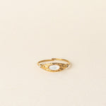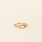 This Celestial Ring is crafted and features a Mother of Pearl centrepiece. It is both Non-Tarnish and Water Resistant.