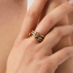 This striking Trio Interlocked Ring in Gold with Silver is the perfect addition to any jewelry collection. While the unique interlocked design adds an element of sophistication. This ring effortlessly complements any outfit and is sure to turn heads. Don't miss out on the opportunity to own this must-have piece!