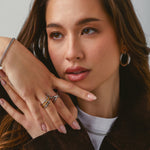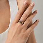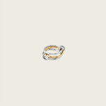 Experience the versatility and elegance of our Trio Interlocked Ring in Silver with Gold. With this ring, you can effortlessly switch up your style for any occasion. This interlocked ring is the perfect accessory to add a touch of sophistication to your look. And best of all, it's just one ring, making it easy to wear and pair with any outfit. No adjusting necessary!