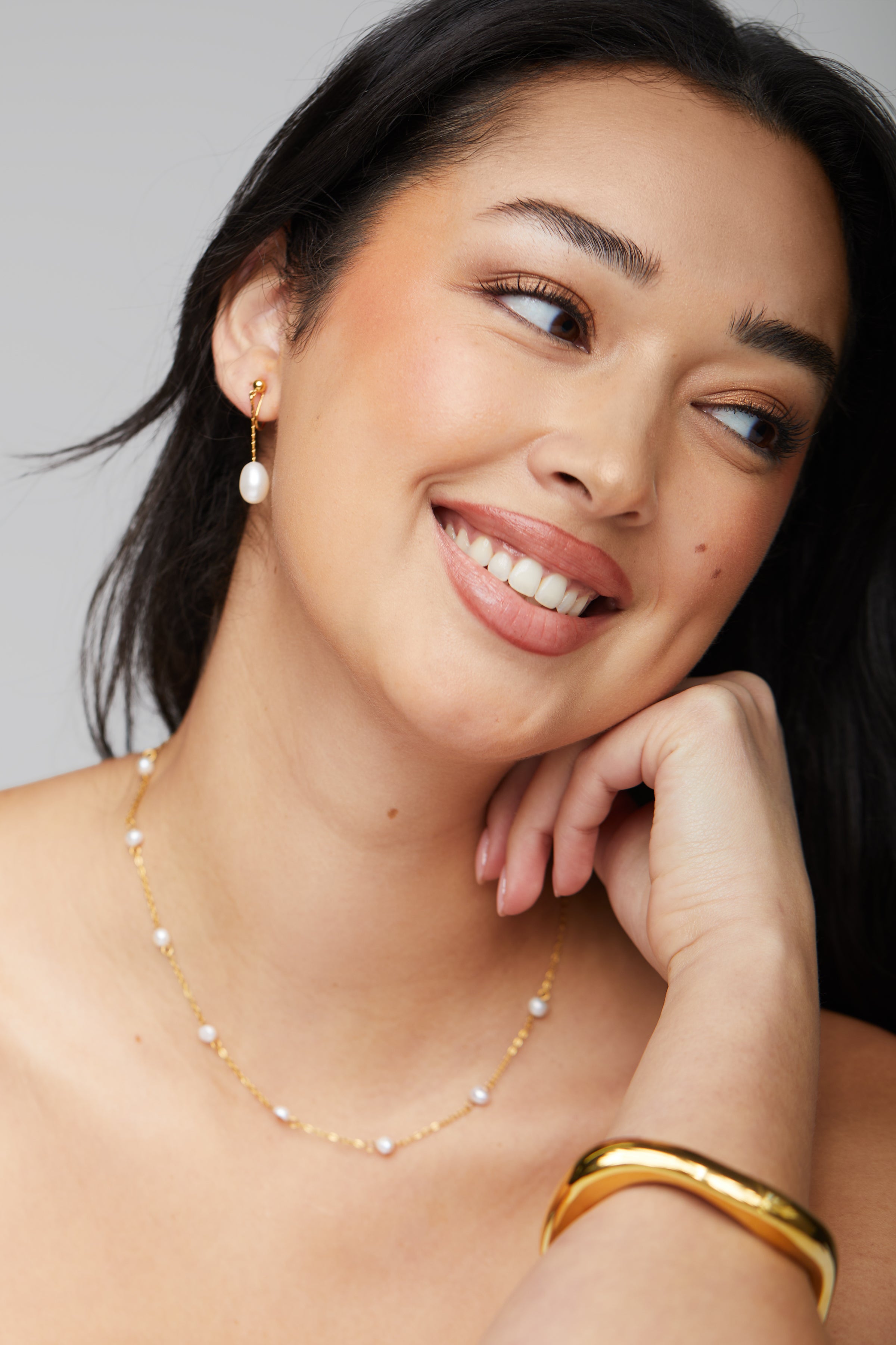 Pearl Pavé Huggie Clip On Earrings in Gold