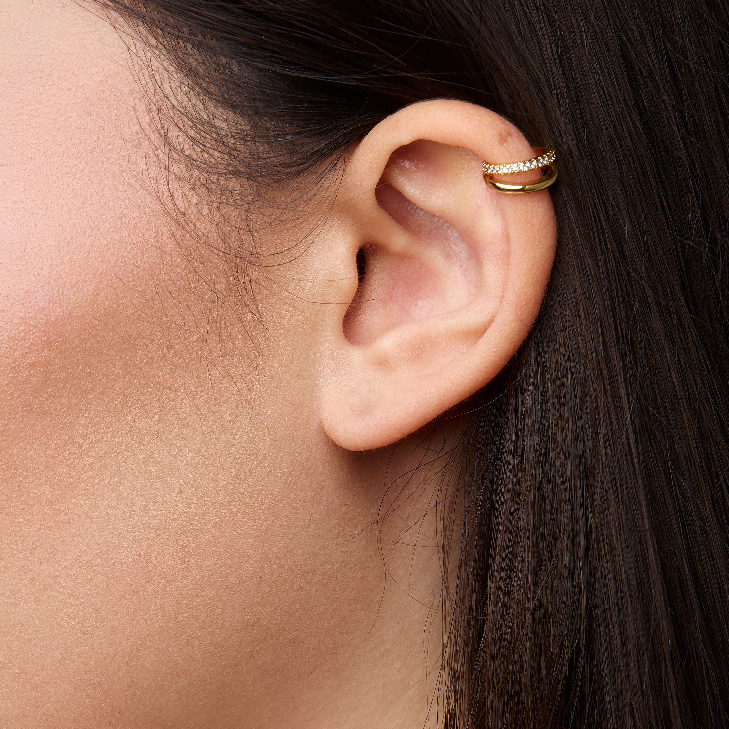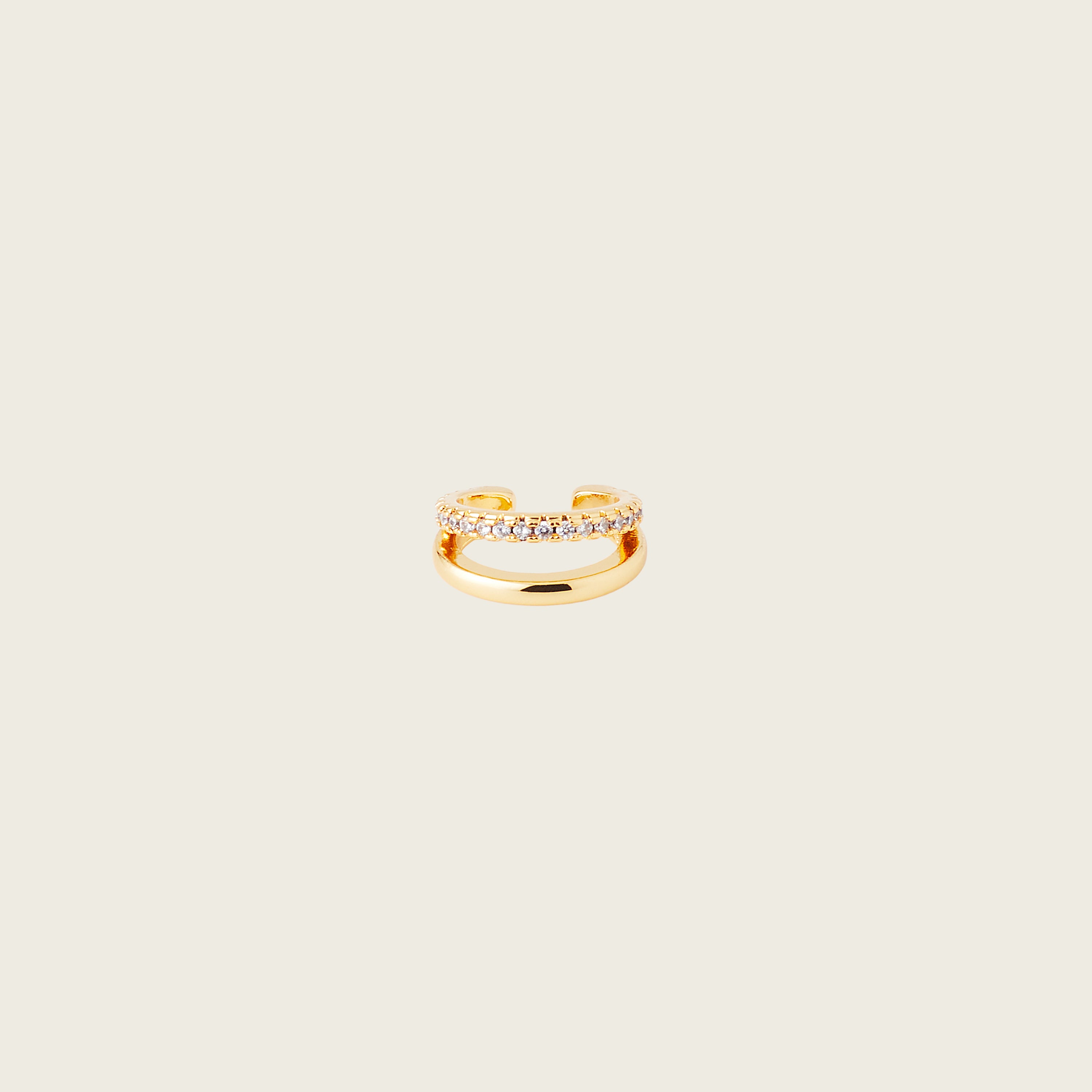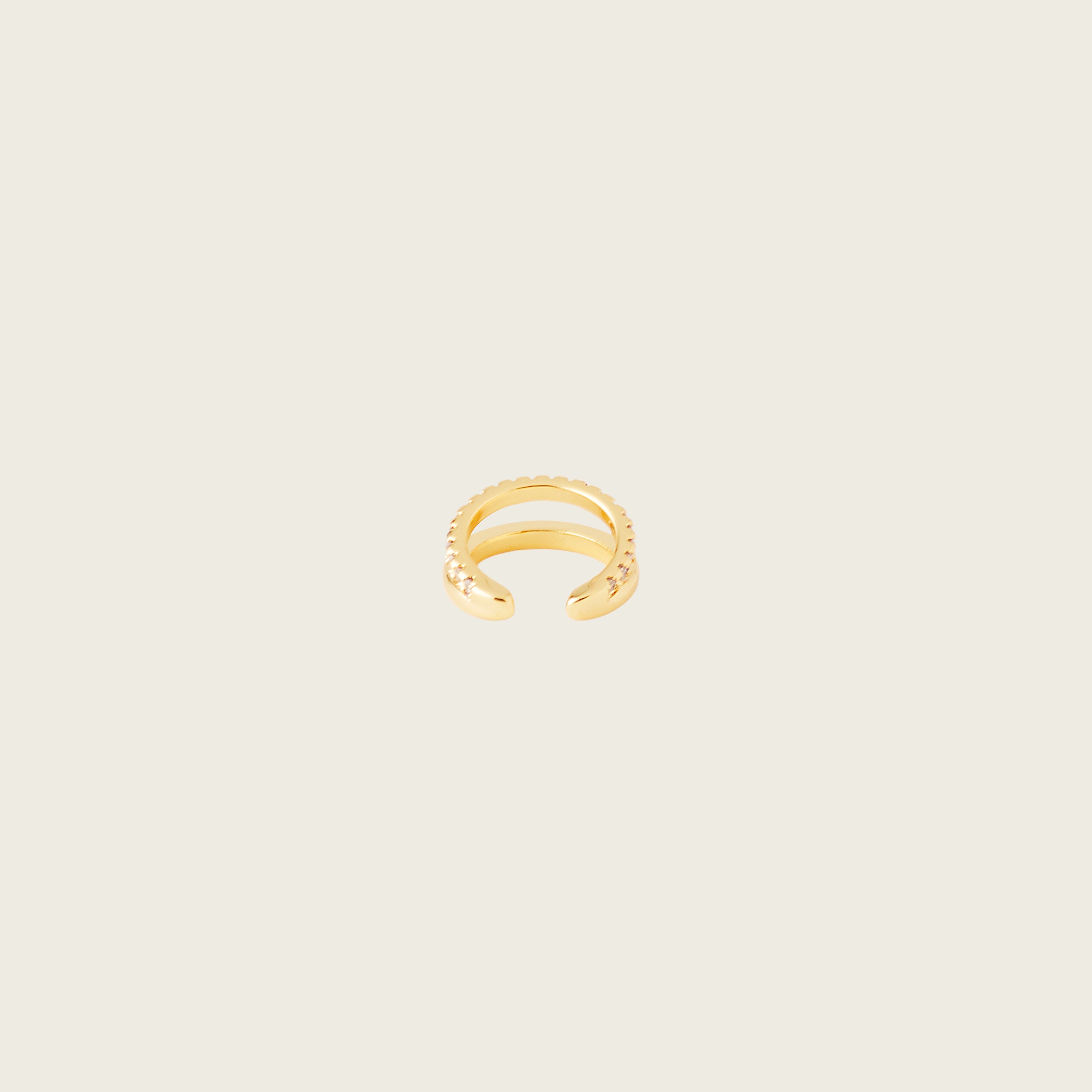 The Estelle Ear Cuff in Gold features a row of sparkling stones. Beautiful worn alone or in a glamorous stack.