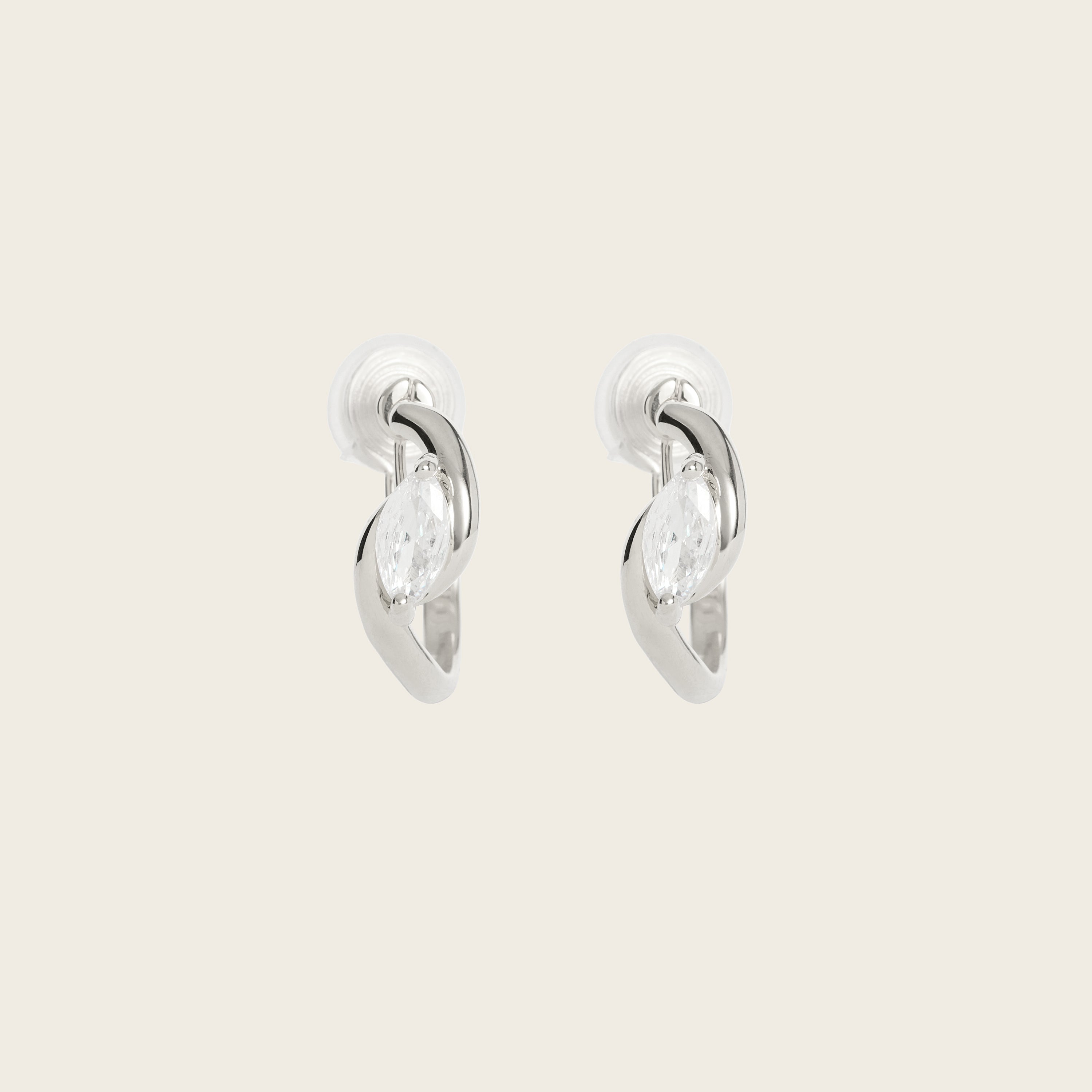 Marquise Swirl Hoop Clip On Earrings in Silver