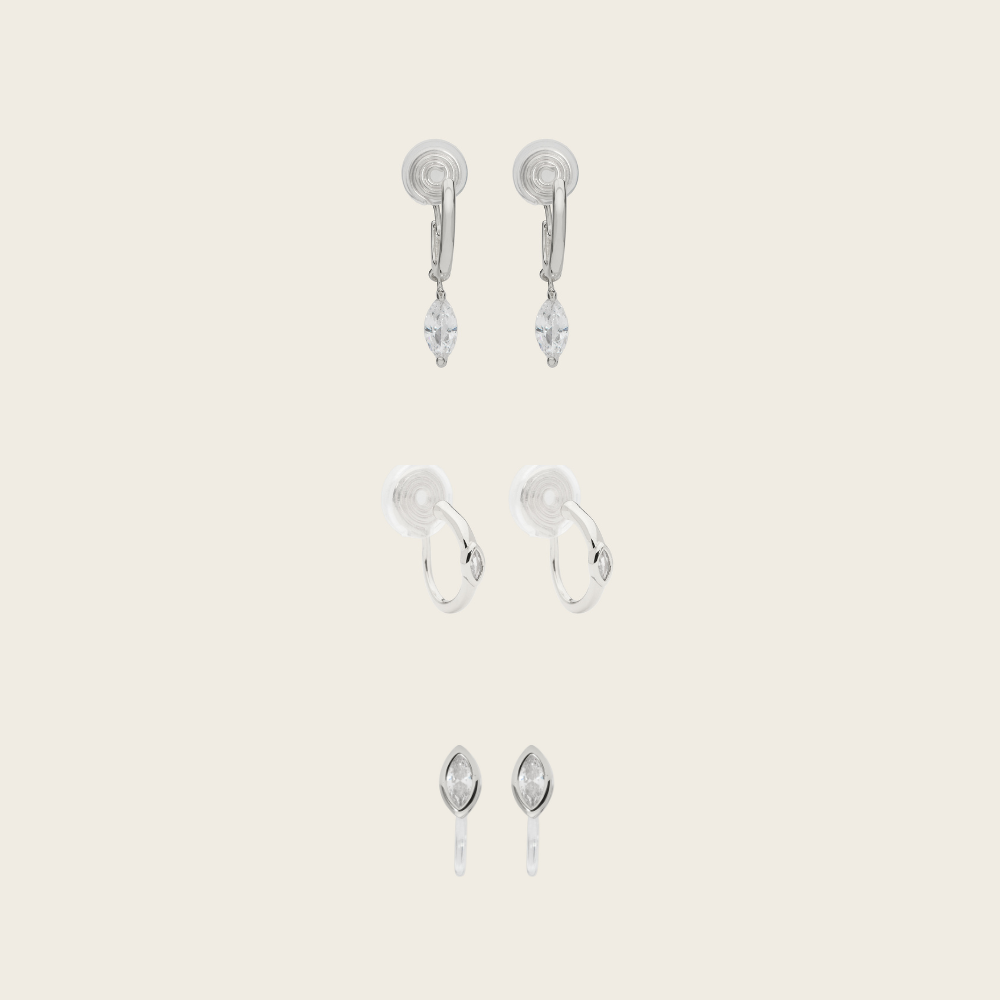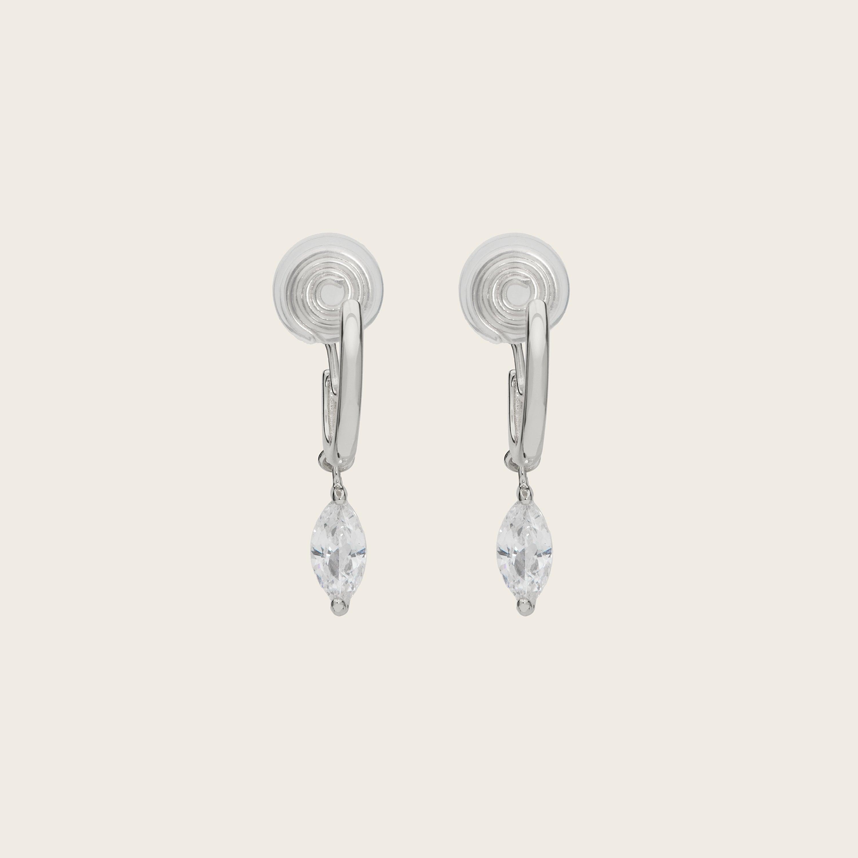 Tiny Marquise Hoop Clip On Earrings in Silver
