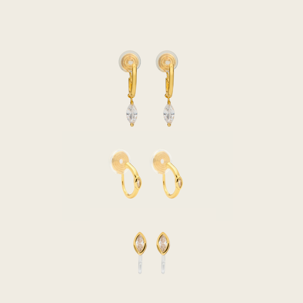 Tiny Marquise Hoop Clip On Earrings in Gold