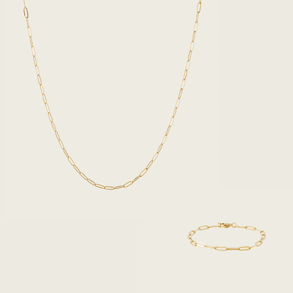 This set consists of a piece of the following: Essential Paperclip Chain Necklace in Gold and Essential Paperclip Chain Bracelet in Gold