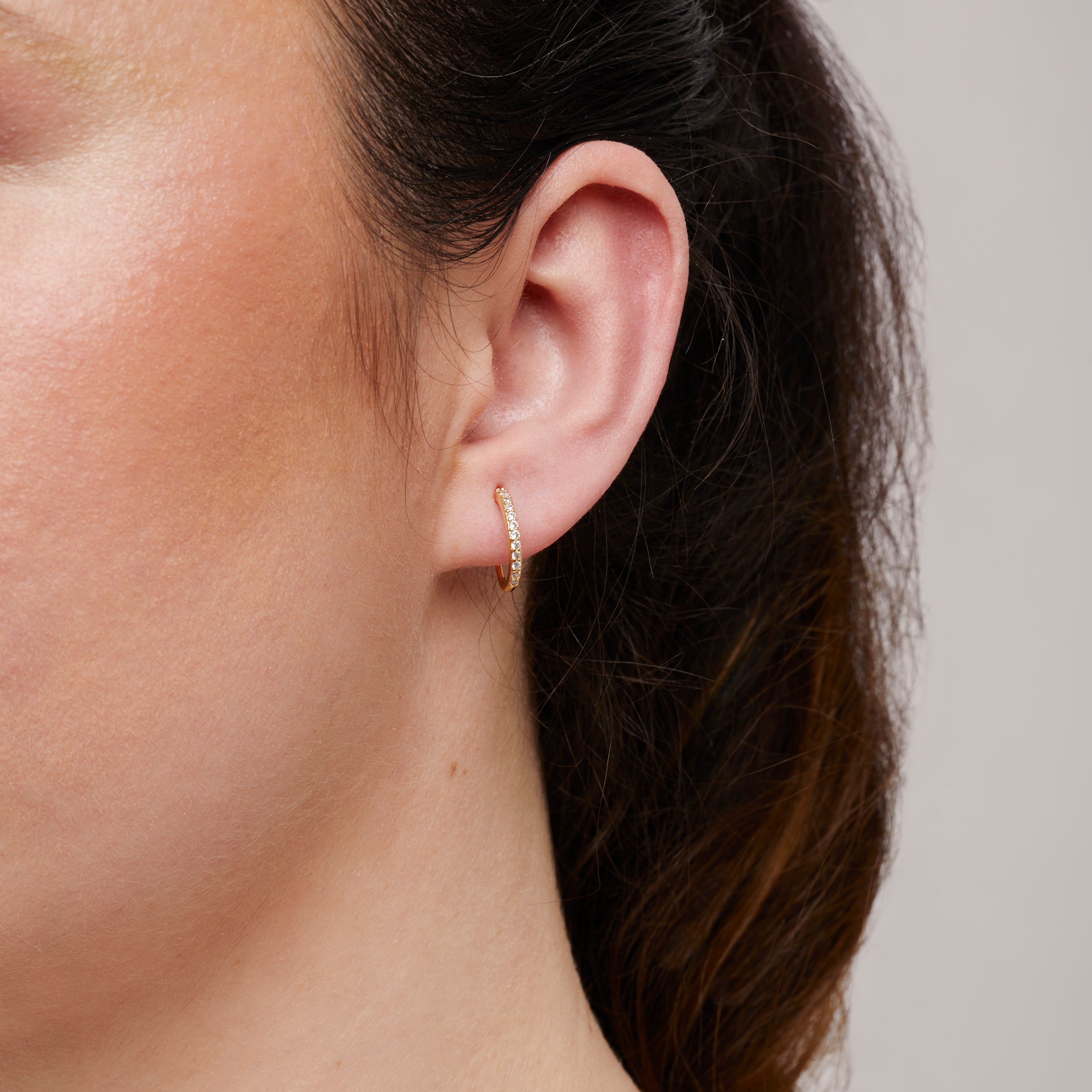 Mini Pavé Huggie Clip On Earrings in Gold,
