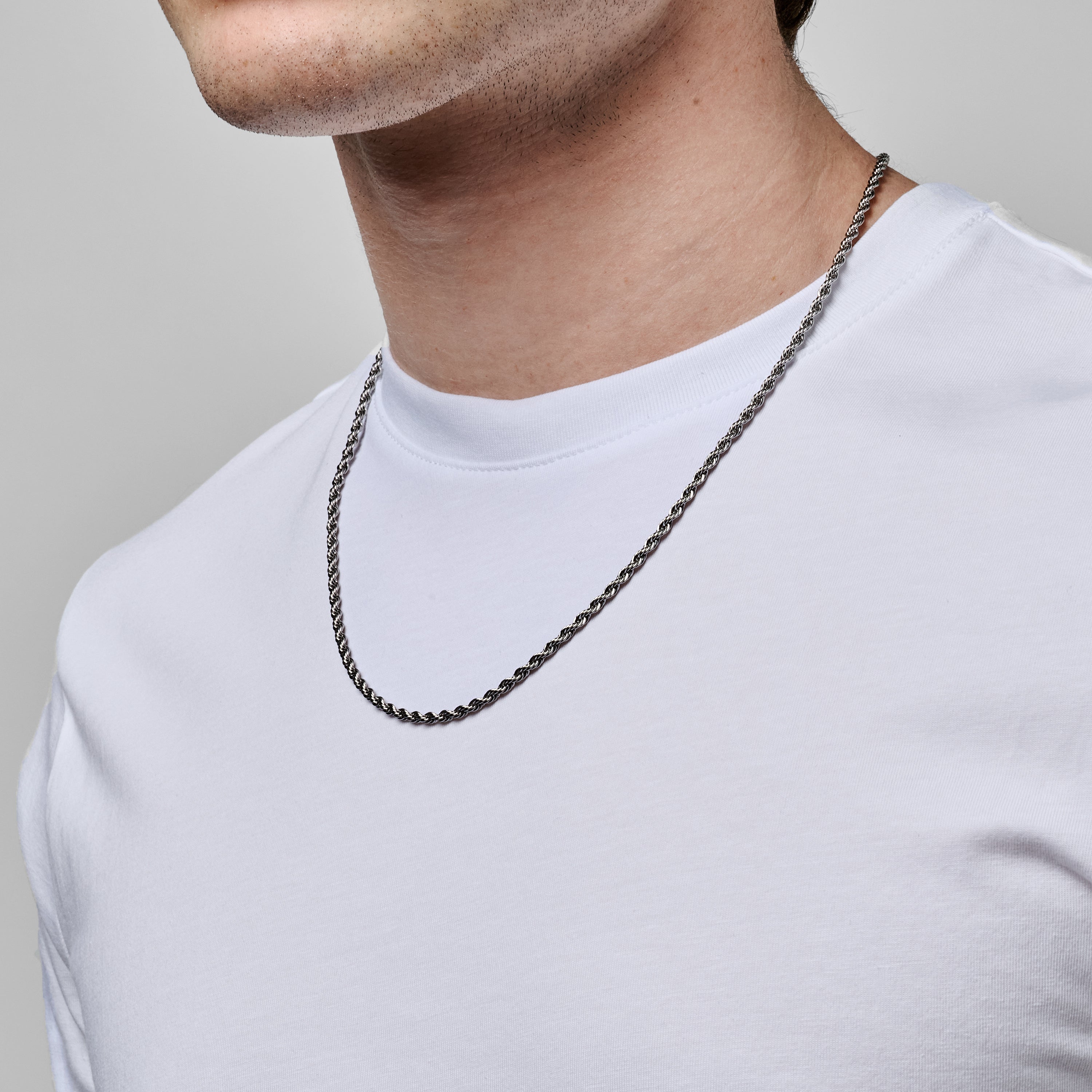 Designed with interlocking twisted links, this stunning Twisted Rope Chain in Silver is crafted to fit and last. Hypoallergenic, non-tarnish, and water-resistant— this piece is sure to make an unforgettable statement! Available is 3 lengths, 45 cm, 50 cm, and 55 cm.